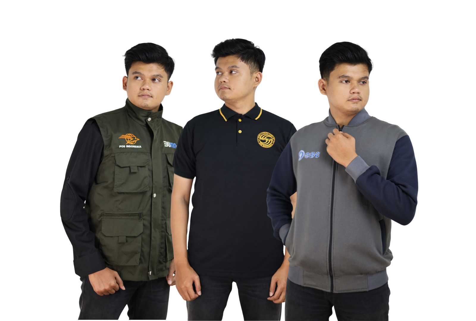 Kami memproduksi berbagai jenis apparel dan seragam, termasuk: kaos, polo shirt, kemeja kantor, jaket, hoodie, wearpack, seragam lapangan, seragam komunitas, hingga merchandise perusahaan.